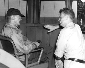 After a brief sojourn in command of Cruiser Division FIVE, Burke was again ordered to Korea on “temporary duty” to join the UN team, headed by VADM Joy, appointed to negotiate an armistice with the North Koreans. He remained in this assignment as one of the two principal negotiators for the UN until a cease fire line was established in November.