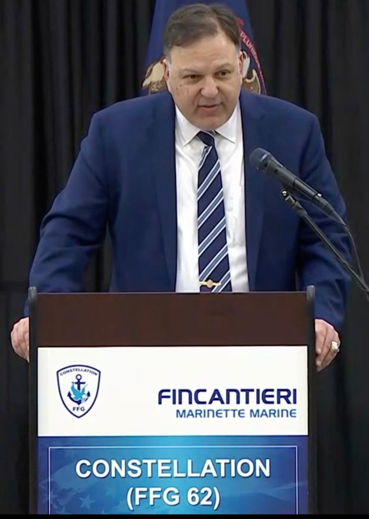 Mark Vandroff, CEO Fincantieri Marinette Marine, hosting Constellation Keel Authentication Ceremony, (Precomm Auxo)