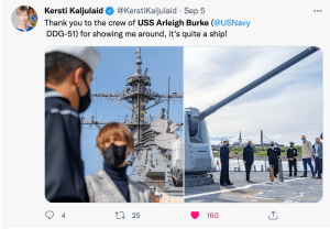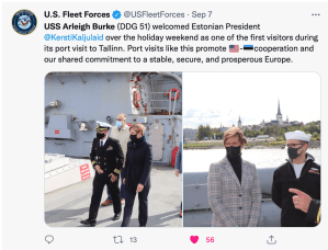 In September, the ship conducted a port visit to Tallinn, Estonia. Arleigh Burke is the first ship to pull into Tallinn in more than two years. During the visit, the ship hosted Estonian President Kersti Kaljulaid and other distinguished visitors for tours of the ship and hosted a media availability with members of Estonian press. Sailors also had a chance to participate in a community relations event at the National Library of Estonia.