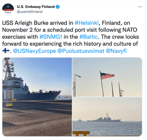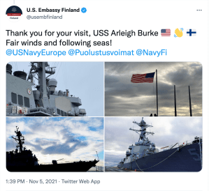 After the SNMG 1 operations, Arleigh Burke conducted a port visit in Finland.