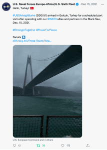 USS Arleigh Burke Arrives in Constanta, Romania – Press Release from U.S. Naval Forces Europe and Africa / U.S. Sixth Fleet – Dec 5, 2021