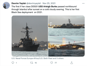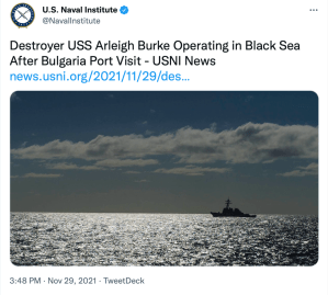 - Destroyer USS Arleigh Burke Operating in Black Sea After Bulgaria Port Visit – USNI News – Nov 29, 2021