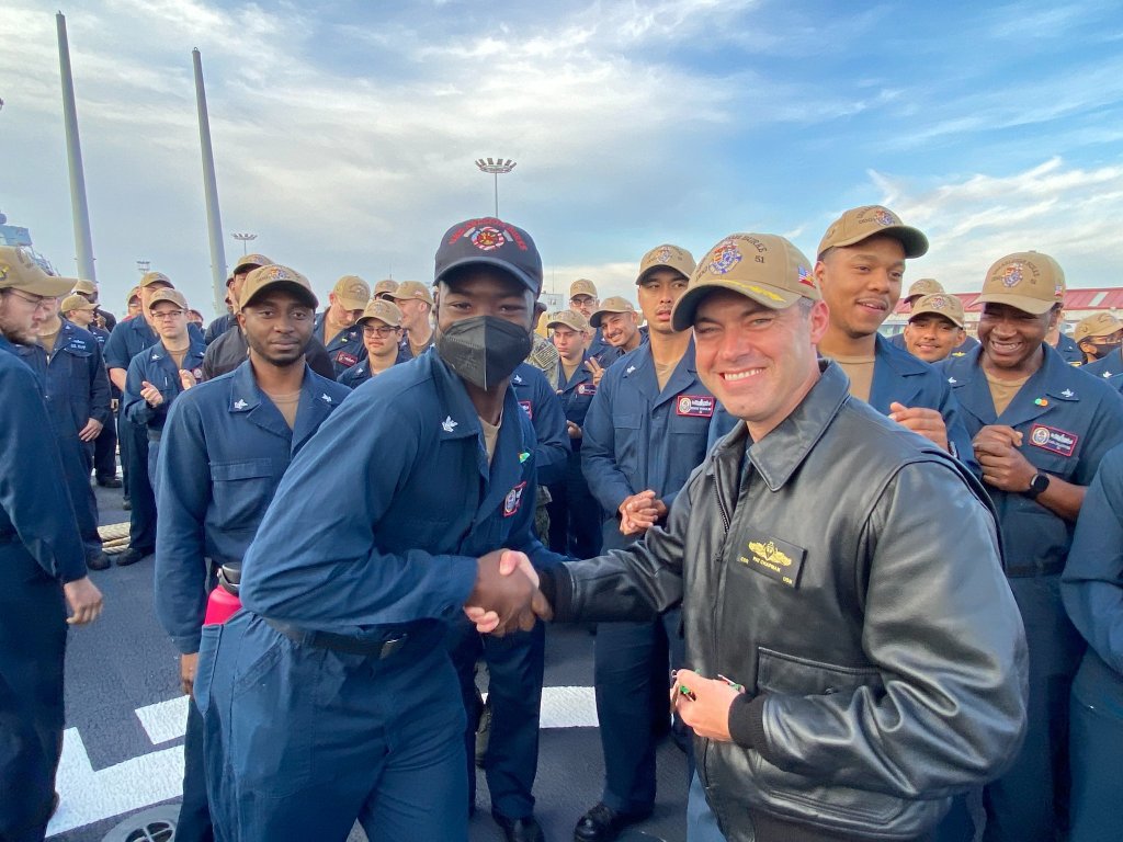 Commander Chapman led the ship through completing post-upgrade workups, a home port shift to Rota Spain, and a 44,000 mile initial Forward Deployed Naval Forces deployment, operating from the Arctic Circle to the Baltic Sea, all while dealing with the further complications of COVID-era operations.