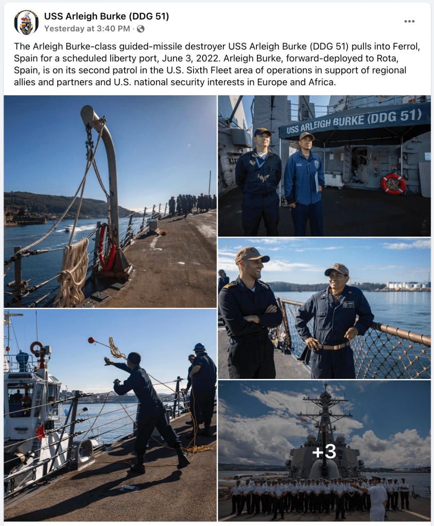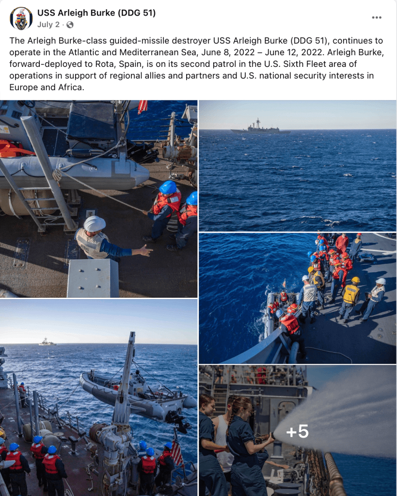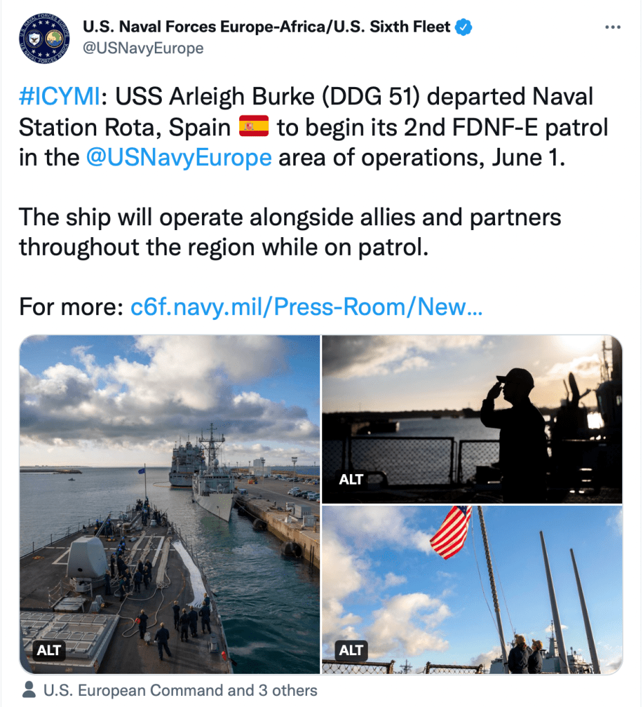 USS Arleigh Burke begins second FDNF-E patrol – Press Release from U.S. Naval Forces Europe and Africa / U.S. Sixth Fleet – June 15, 2022