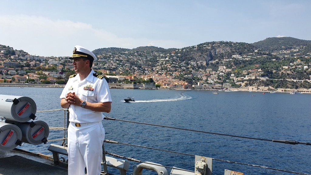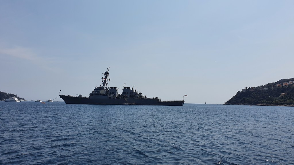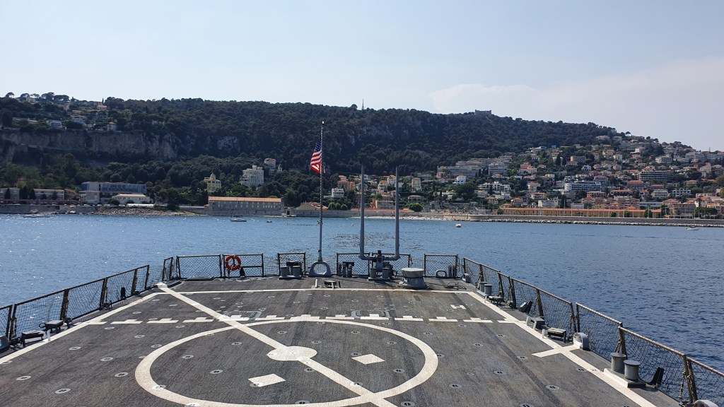 In mid-June, the ship visited Nice, France, and hosted a visit by RADM P. A. Dur, the ship’s first Battle Group Commander.