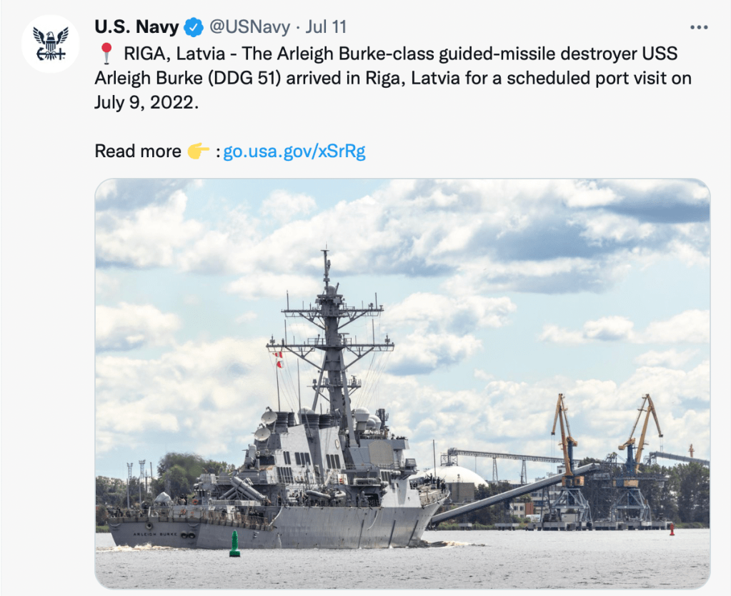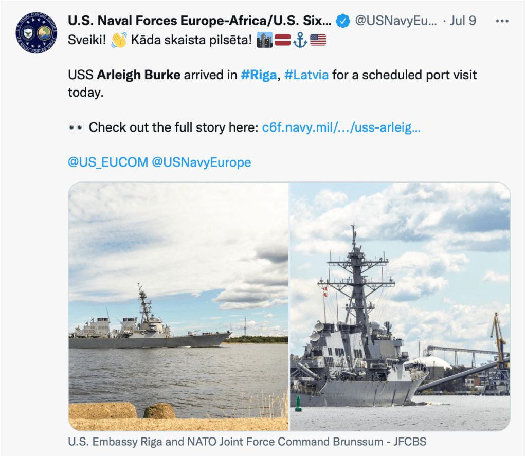 USS Arleigh Burke arrives in Riga – Press Release from U.S. Naval Forces Europe and Africa / U.S. Sixth Fleet – July 9, 2022