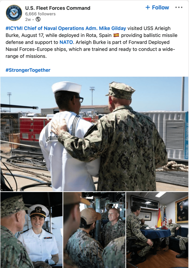 The CNO visited on Aug 17, 2022, inport Rota.