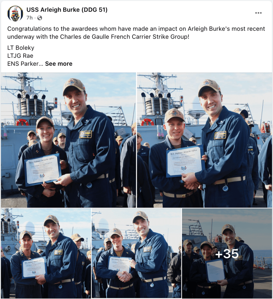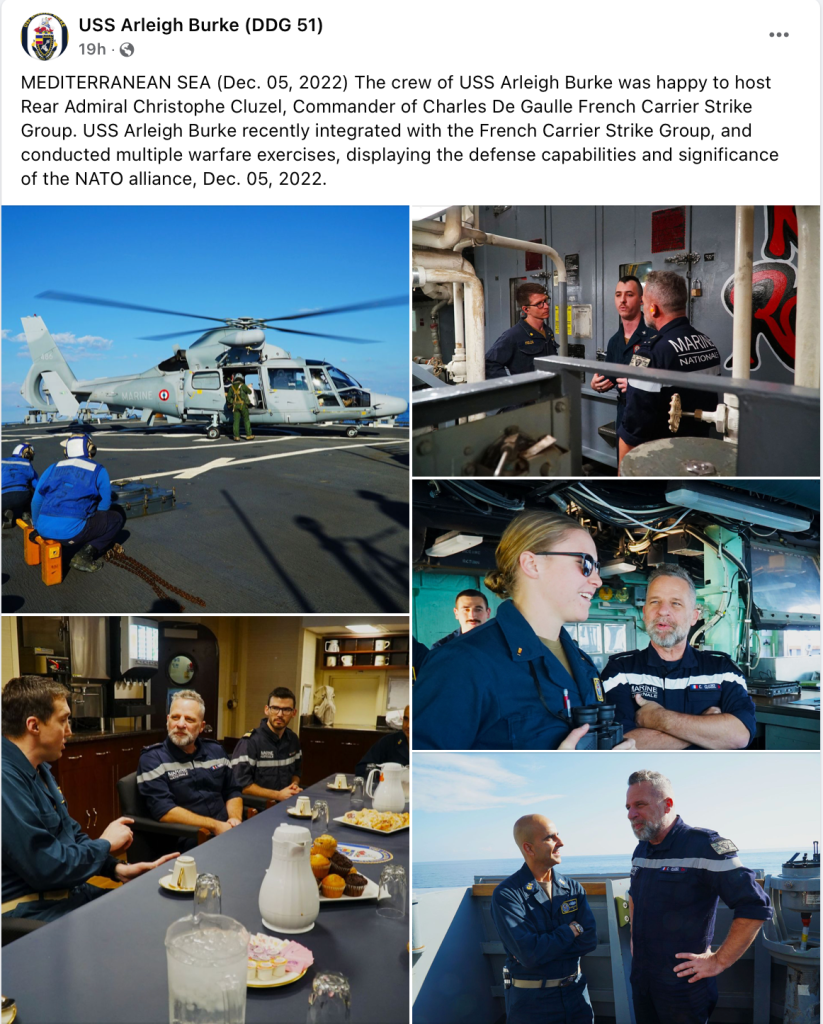 USS Arleigh Burke (DDG 51) Hosts French Maritime Force Commander – US Navy Press Release – Dec 16, 2022