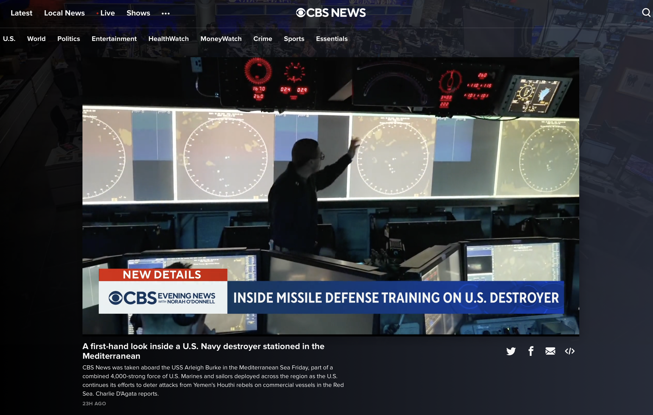 Additionally, on April 13, 2024, Carney alongside USS Arleigh Burke (DDG 51), successfully engaged Iranian ballistic missiles fired at Israel.